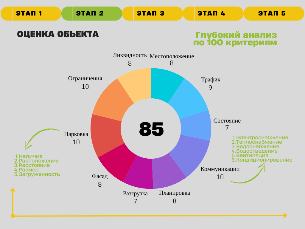 Мы минимизируем ваши риски «пустующего объекта». Наша экспертиза и алгоритм из 100+ критериев оценки позволяют выбирать только ликвидные объекты с доказанной проходимостью и потенциалом заполняемости под 95%+.