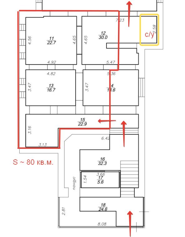 Общая площадь: 80 кв.м., 1 этаж. Отдельный вход с фасада. Просторное помещение прямоугольной формы с удобным планировкой. Высота потолков – 3 м. Электрическая мощность – 10 кВт. Центральное отопление. Возможность размещения вывески.