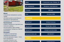 - Суммарная Арендная плата (МАП): 205 000 рублей в месяц. Договоры подписаны на 10 лет до ноября 2034 года с ежегодной индексацией.
